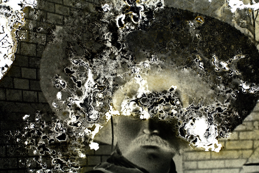 La serie Trauma es un paraguas que engloba proyectos relacionados con las ruinas de lo fotográfico en un momento de transición a las fotografías hechas por dispositivos automatizados y por inteligencias artificiales. Esa fotografía infectada y agonizante nos habla de la venganza del tiempo contra nuestra soberbia de inmortalidad. Nos habla de imágenes fantasmas que estetizan el horror. Nos habla de la materia versus la memoria y de la restitución de la alquimia. Sobre esas bases se erige el proyecto Mictlán, realizado a partir de los fondos de archivos mexicanos alrededor del inframundo de las imágenes.
